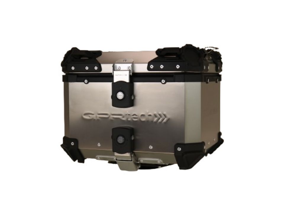 Bauletto GPR TECH TOP CASE ALPI-TECH capacità 26 Litri, realizzato in alluminio 5052, colore argento,la dimensione permette la custodia fino a due caschi,la piastra specifica e viteria per installazione sul portapacchi originale senza modifiche sono incluse nel kit. Il bauletto GPR TECH comprende una fodera estraibile e lavabile per la protezione del casco, quattro punti di ancoraggio offrono una resistenza ottimalae . Si possono acquistare separatamente come optional la protezione schienale e la borsa oggetti estraibile.