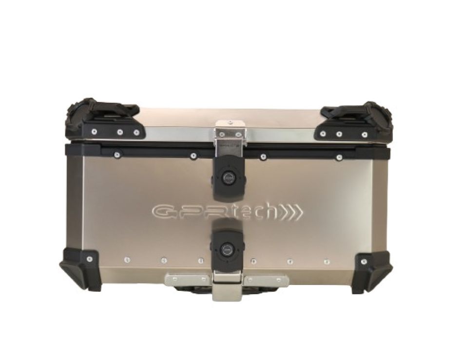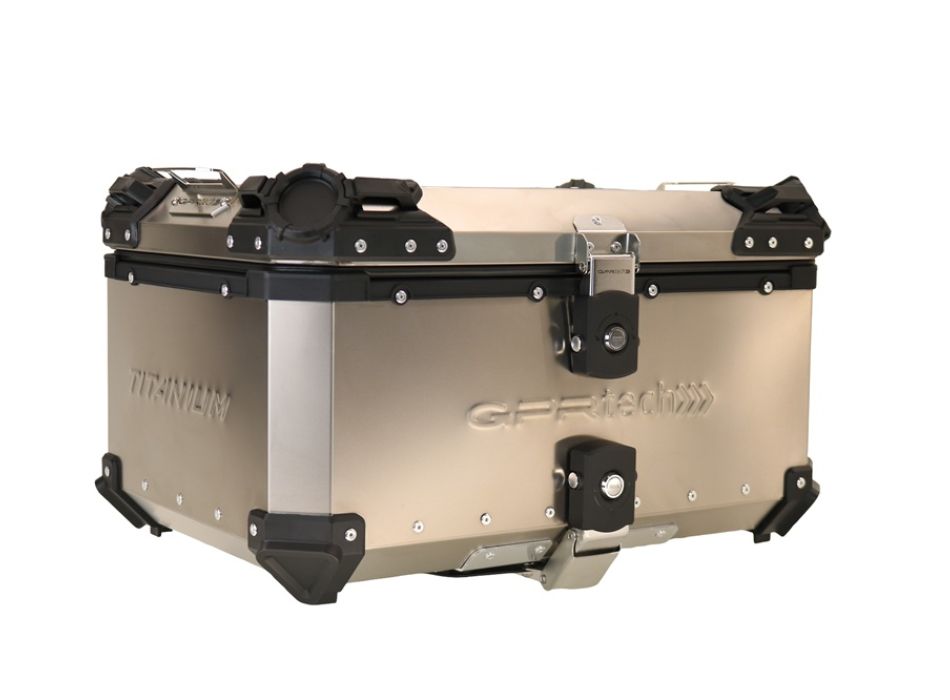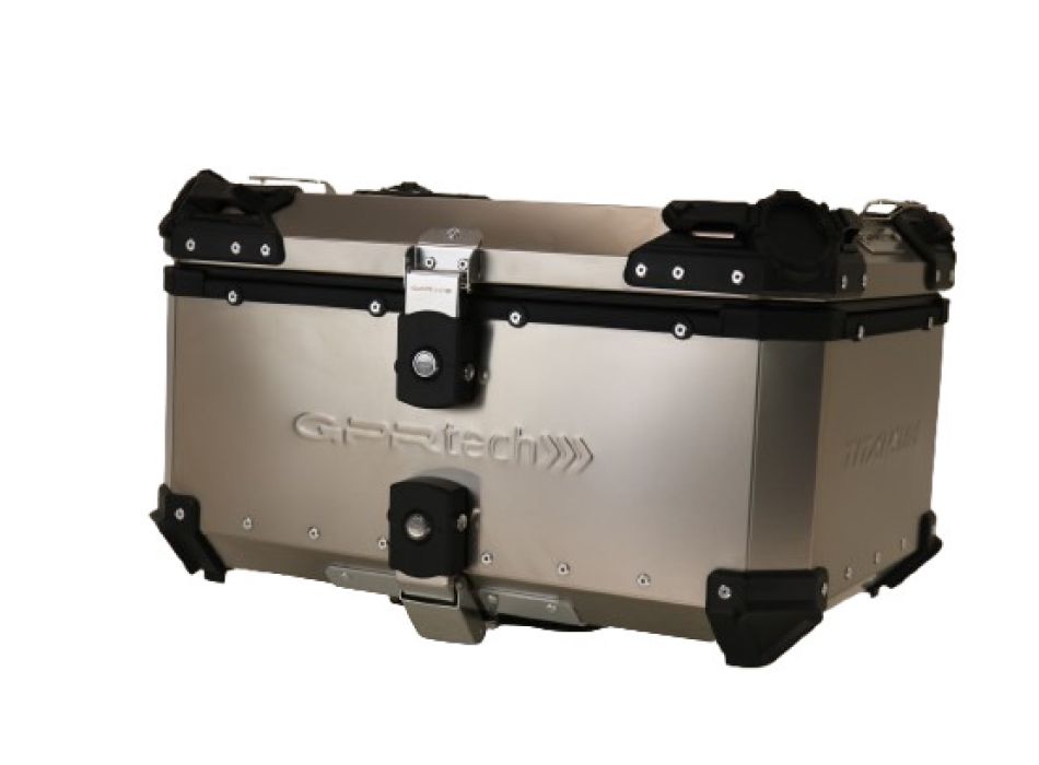 Bauletto GPR TECH TOP CASE ALPI-TECH capacità 55 Litri, realizzato in Titanio Astm gr.1 , colore titanio naturale,la dimensione permette la custodia fino a due caschi,la piastra specifica e bulloneria/staffe sono incluse. Il bauletto GPR TECH comprende una fodera estraibile e lavabile per la protezione del casco e la piastra offre numerosi punti di ancoraggio. Si possono acquistare separatamente la protezione schienalee soprattutto gli adattatori specifici per il portapacchi originale. Può contenere due Caschi 13740 13741 13742 13743 13744