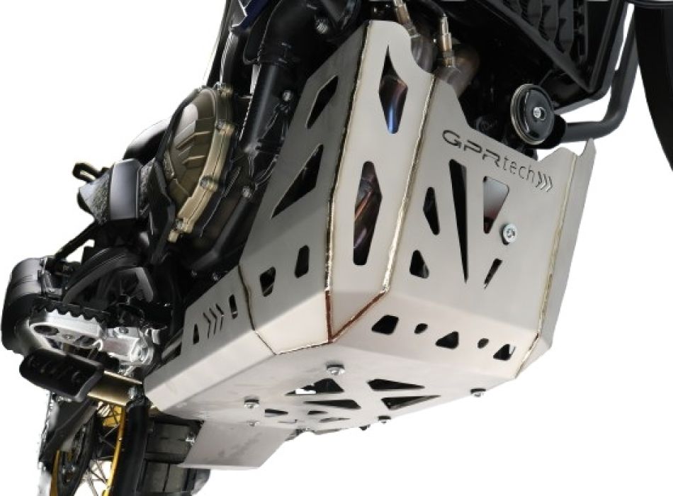 GPR TECH, potrezione realizzata in titanio di alta qualità con spessore 3 mm, la piastra paramotore ha un dimensione che permette di avvolgere le parti più esposte del motore, telaio e alla pompa dell'acqua. Realizzato in titanio, risparmierai il 50% di peso rispetto ad altri prodotti realizzati in alluminio, non genera vibrazioni, assorbe parte della potenza degli urti ed è la soluzione migliore per proteggere la tua moto dai sassi. Si monta senza modifiche strutturali 17323