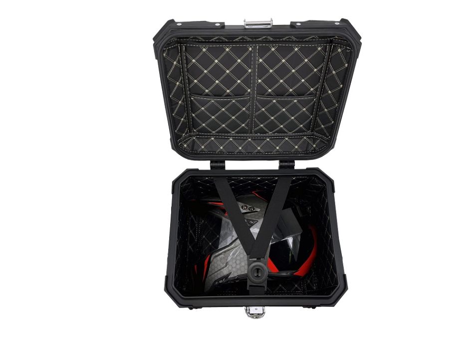 Bauletto GPR TECH TOP CASE ALPI-TECH capacità 26 Litri, realizzato in alluminio 5052, colore nero,la dimensione permette la custodia fino a due caschi,la piastra specifica e viteria per installazione sul portapacchi originale senza modifiche sono incluse nel kit. Il bauletto GPR TECH comprende una fodera estraibile e lavabile per la protezione del casco, quattro punti di ancoraggio offrono una resistenza ottimalae . Si possono acquistare separatamente come optional la protezione schienale e la borsa oggetti estraibile. Massima portata come peso 10 Kg 14332