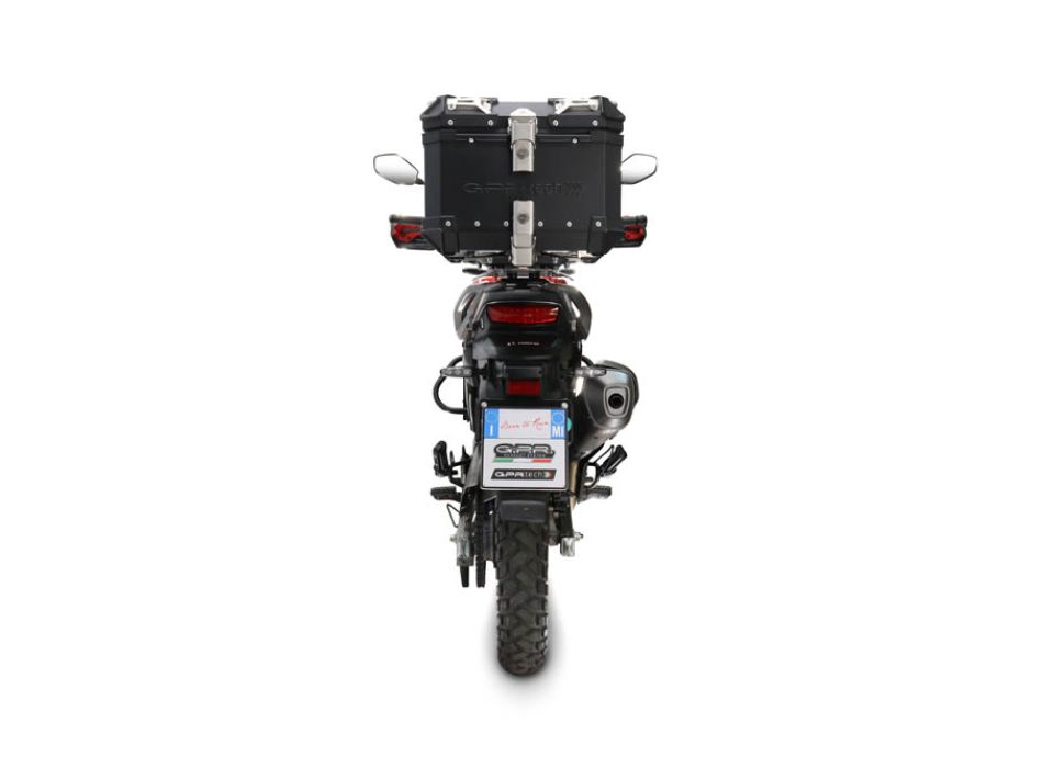 Bauletto GPR TECH TOP CASE ALPI-TECH capacità 26 Litri, realizzato in alluminio 5052, colore nero,la dimensione permette la custodia fino a due caschi,la piastra specifica e viteria per installazione sul portapacchi originale senza modifiche sono incluse nel kit. Il bauletto GPR TECH comprende una fodera estraibile e lavabile per la protezione del casco, quattro punti di ancoraggio offrono una resistenza ottimalae . Si possono acquistare separatamente come optional la protezione schienale e la borsa oggetti estraibile.